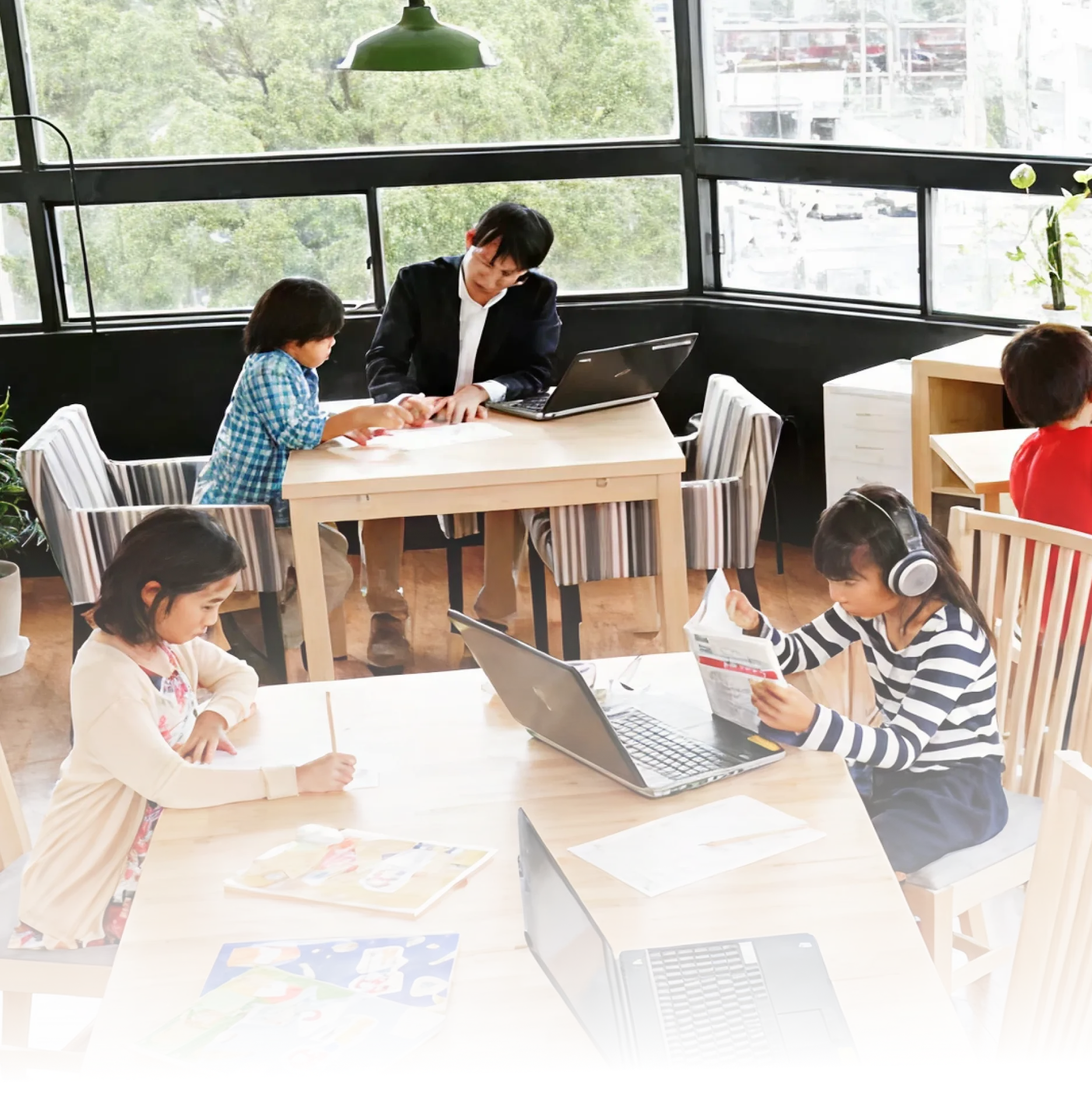 先生が黒板に文字を書き、生徒が先生の言うことを聞いてノートに書き留めるというものです。私たちは集団授業において、授業についていけない生徒たちが心配になりました。