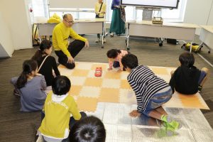 そのプログラムの設計や取りまとめをされていた松坂真吾氏と、プログラムの参加者である伊那東小学校の田中愛氏にお越しいただき、プログラム実施までの道のりと、その事例を発表していただきました。 事例発表後、田中氏に教育関係者向けに「クリエイティブ・ラーニング」を体感的に学ぶワークショップを実施していただきました。