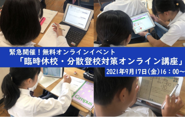 「自立学習」「生涯学習」を事業の軸とし、学習塾・学校・生涯学習教室向けICT教材システムの企画・制作・販売を手がける株式会社日本コスモトピア(本社:大阪府大阪市、代表取締役社長:下向 峰子、以下:日本コスモトピア)は、緊急事態宣言延長による小中学校の休校・分散登校対策を、全国の先生方の不安や知恵を共有しあえる場所として、2021年9月17日(金)16:00〜17:00に「臨時休校・分散登校対策オンライン講座」を開催いたします。分散登校対策を実施している学校の実例紹介と、参加者から頂いた課題をもとにお話いたします。