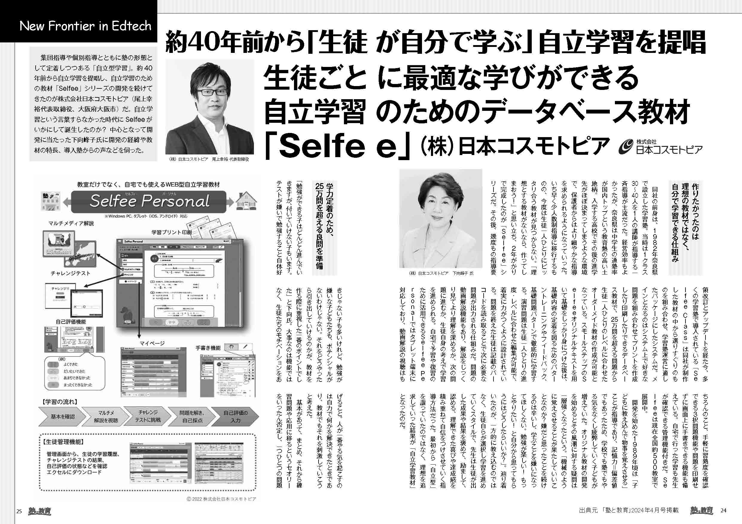 「塾と教育」2024年4月号に、Selfeeの紹介記事を掲載していただきました。