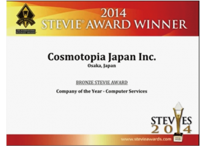 株式会社日本コスモトピアは、米国の国際的なビジネスアワード「2014 Stevie® Awards(スティービーアワード・国際ビジネス大賞)」の「Company of the Year – Computer Services –(カンパニー・オブ・ザ・イヤー部門・コンピューターサービス)」において、「ブロンズスティービー(Bronze Stevie)賞」を受賞しました。