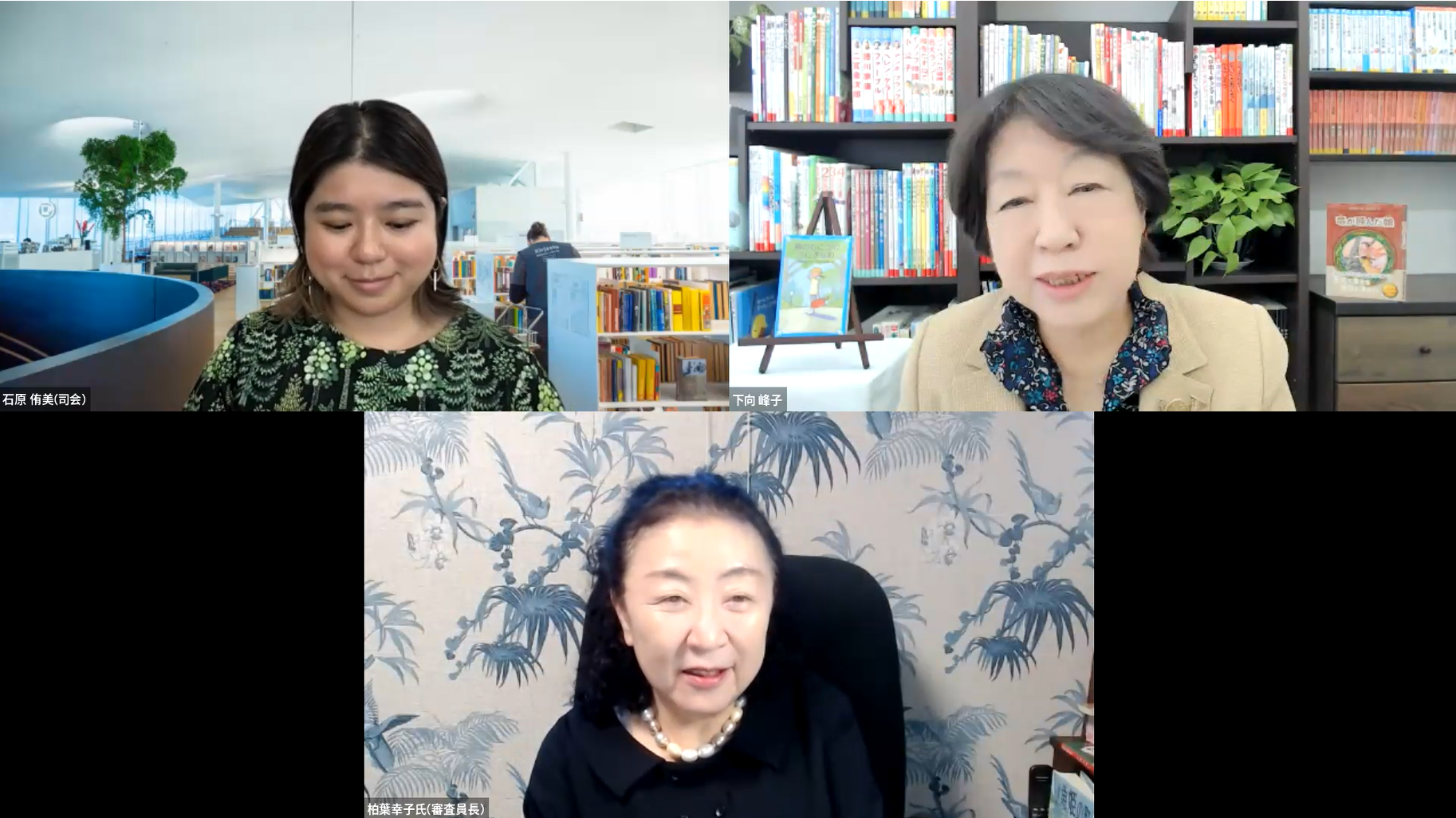 授賞式では、審査員長柏葉幸子先生にご出演いただきました。先生が作家になられた経緯、お話を作る時に大切にしていらっしゃることなどいろいろな質問にお答えいただきました。本が大好きで物語を書くことをずっと続けていたら作家になっていたというエピソードは、子どもたちにも大人にもとても響いた言葉でした。また授賞式では画面越しではありますが先生方から受賞者へ、賞状授与、感想文・創作文への講評をいただきました。先生とお話できたことは、受賞者の皆さんにとってかけがえのない思い出になったことと思います。