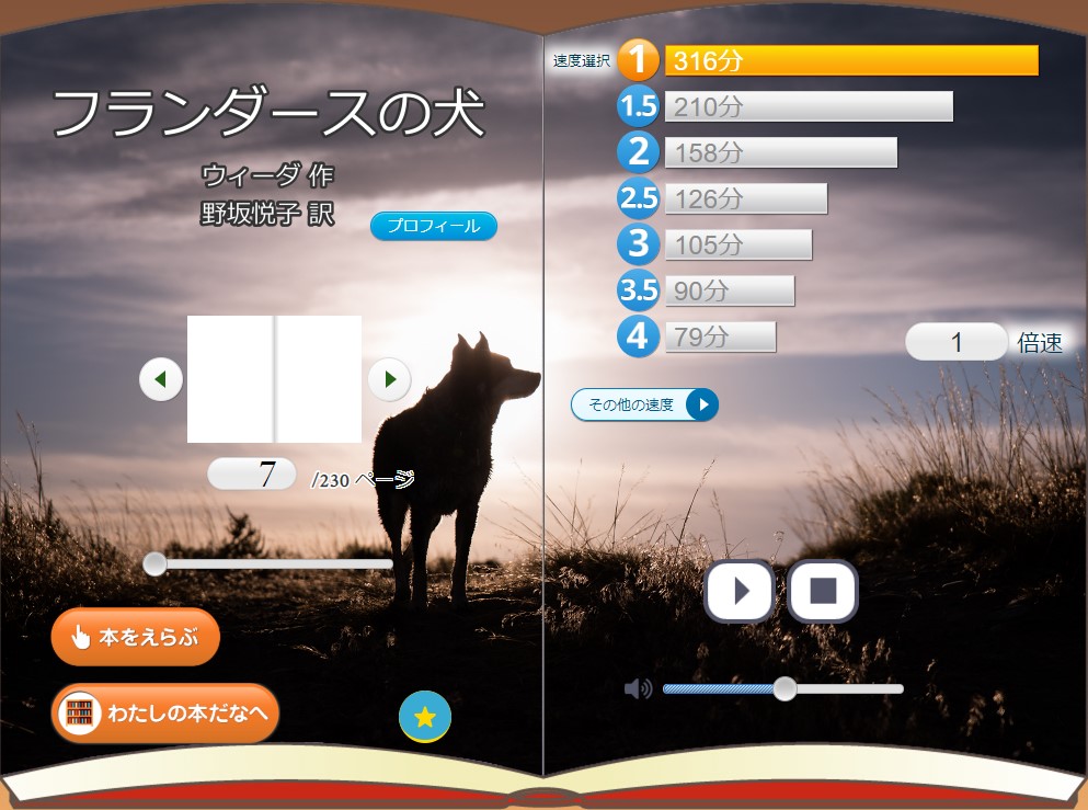 わくわく文庫の再生画面(子どもは実際の本を読んでいるのであまり見ないです)
