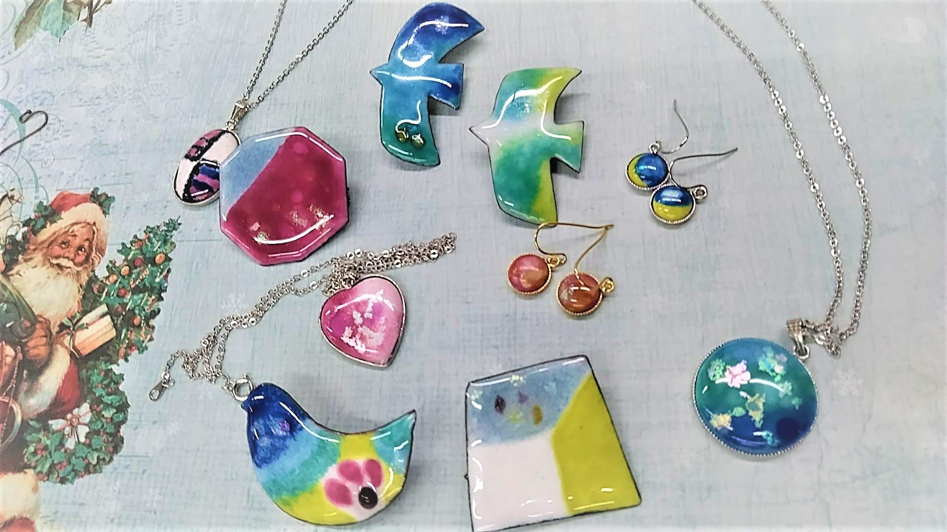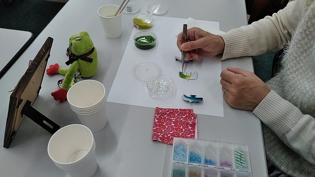 今回は、ブローチやネックレス、ピアス等のアクセサリーを作りました。