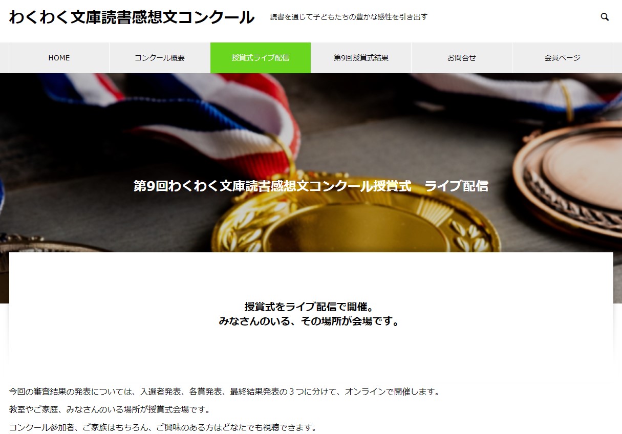 わくわく文庫読書感想文コンクール(タイトルが長いです。「わくコン」とかでも皆さんに分かってもらえるようになってほしい…)の授賞式をオンラインでライブ配信しています。